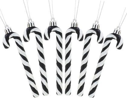 ® Pack of 6-13Cm Glitter Candy Cane Christmas Tree Decorations/Ornaments (Black & White)