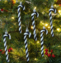 These festive sugar cane ornaments are sure to brighten up your Christmas tree. They will look beautiful on a traditional green tree or as a garland by running a string or ribbon through the top and hanging them from the top of the window, mantle or wall.